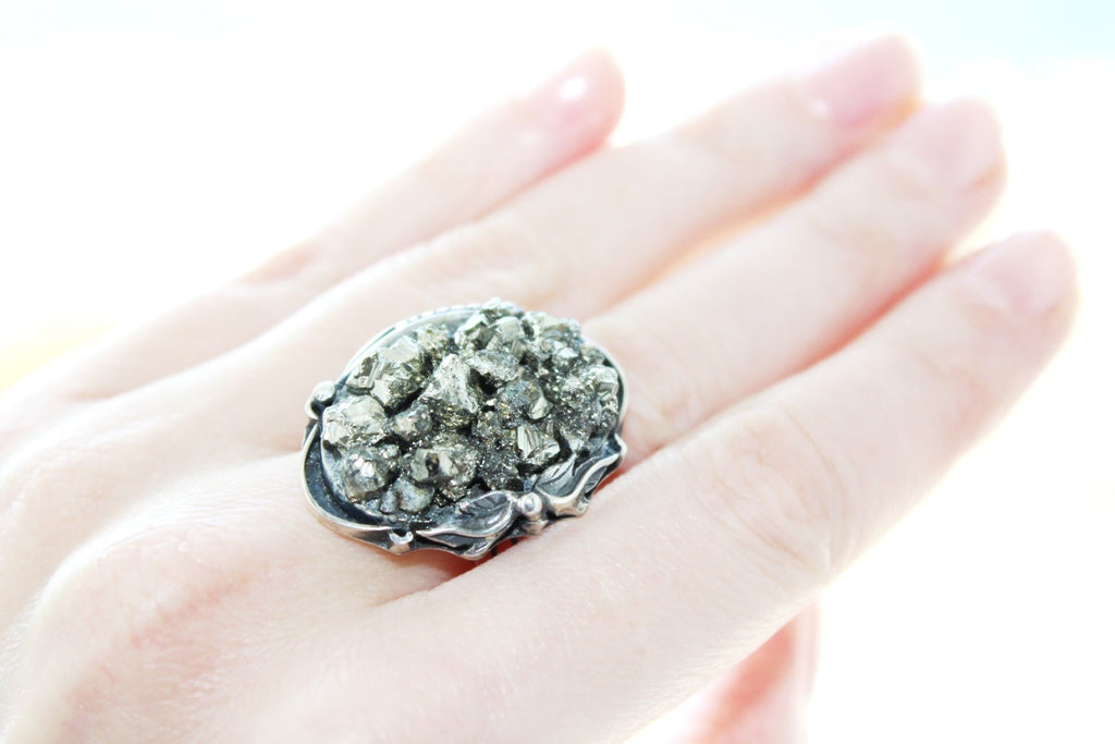 Add a touch of elegance to your look with our unique Druse Ring. Handcrafted by expert Armenian artisans, this silver 925 ring features natural gemstones and a gold colored sparkle for a luxurious touch. Elevate any outfit with this high quality, designer piece from Armenian Spirit.