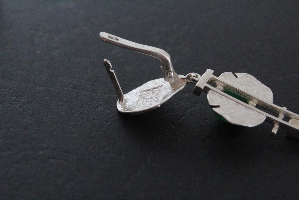 Earrings: Sterling silver 925, natural chrysoprase Weight: 11.6 grams Length: 2.5 inch = 6 cm
