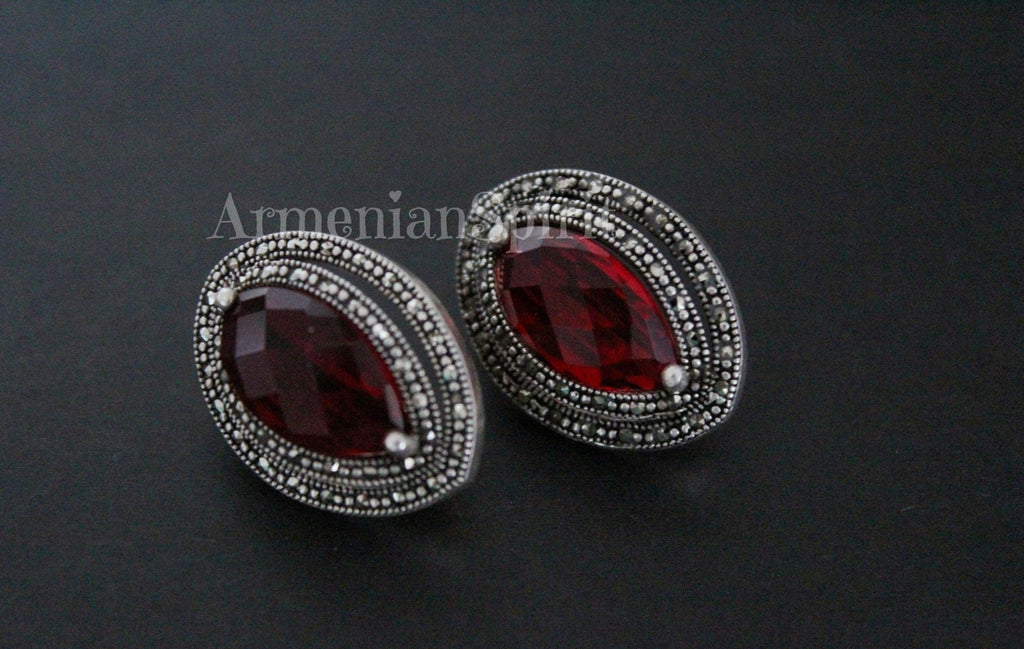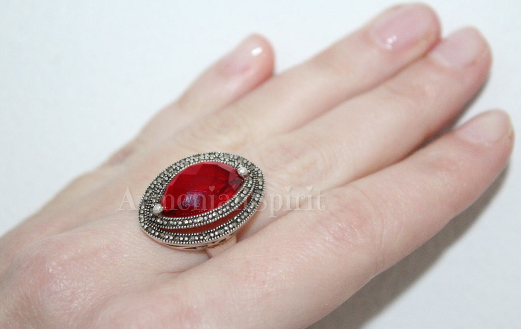 This set includes a pair of elegant earrings and a stunning ring, both crafted with 925 silver and adorned with radiant red topaz. Elevate your style with this timeless and unique set. Discover the beauty of vintage style with our sterling silver Armenian jewelry collection also on ebay.