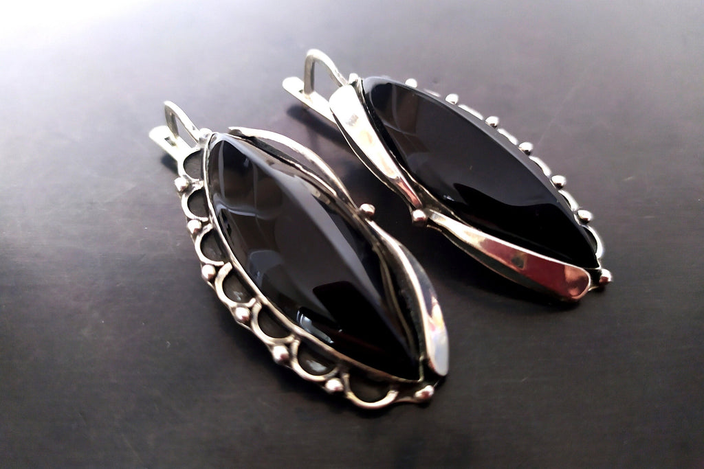 Introducing the perfect addition to your jewelry collection - our unique Armenian earrings! Made from high-quality silver 925 and featuring stunning black onyx stones, each pair is one of a kind and completely handmade by skilled Armenian artisans. Elevate your style with these exquisite artisan jewels. Experience the beautiful combination of elegance and quality with our Armenian jewelry. Made with Silver 925 and stunning black onyx, these earrings are the perfect gift for any mom who appreciates vintage inspired pieces. Treat yourself or a loved one to the best jewelry on Armenian Spirit today!