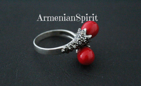 Add a touch of sophistication to your style with these black and red sterling silver925 earrings from our high-quality collection. Adorned with marcasite and red lab coral, these sparkling earrings are the perfect medium length to elevate any outfit. Shop now on Armenian Spirit for a timeless addition to your jewelry collection. Upgrade your style with one of the best high-quality online jewelry stores! Shop online for unique gifts at our top-rated store, with free shipping worldwide and exclusive discounts. Trustworthy and reliable, we're here to help you find the perfect piece for any occasion.