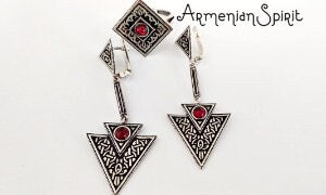 Enhance your jewelry collection with these stunning earrings featuring a triangular design, perfect for those seeking a unique and ethnic flair. Crafted from high-quality STERLING SILVER 925 and adorned with a beautiful Garnet stone, these long dangly earrings are a must-have for any fashion enthusiast.