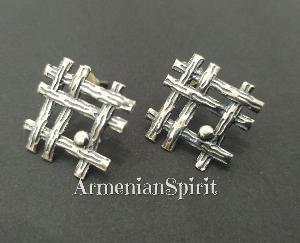Add a touch of modern elegance to your style with these lightweight Sterling silver studs. Handcrafted in Armenia, these art deco inspired earrings feature a simple and sleek geometric design. Perfect for any occasion, these earrings are a must-have addition to your jewelry collection.