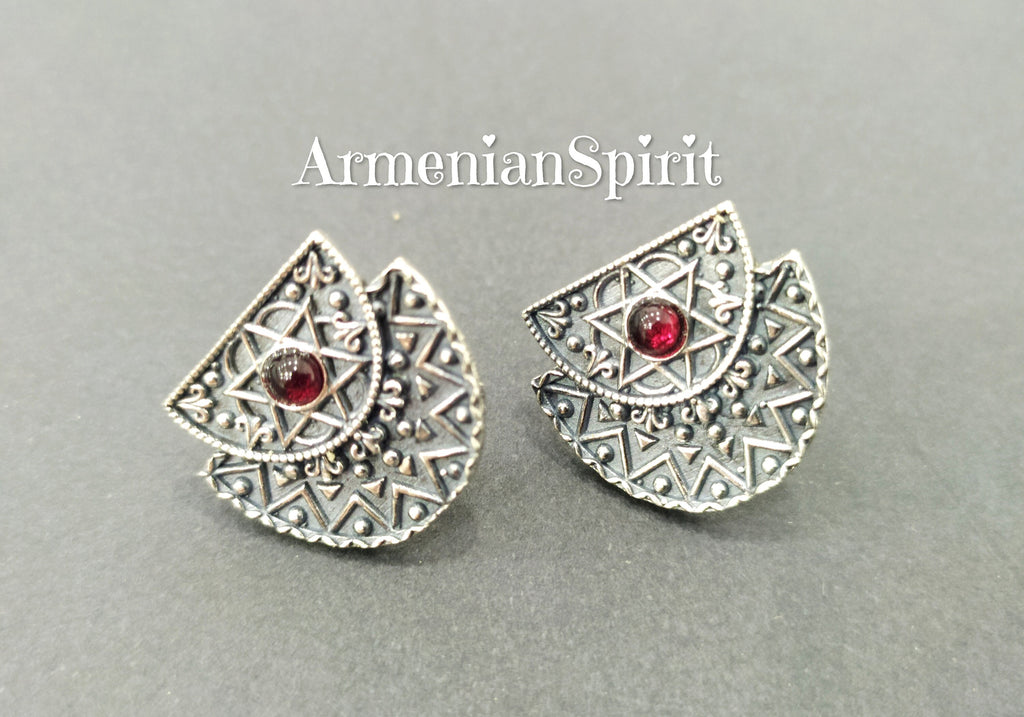 Take your look to the next level with affordable prices and bold style with our Armenian traditions inspired Sterling silver studs. These lightweight earrings feature vibrant red stones that will add a touch of adventure to any outfit. Perfect for the risk-takers and bold fashionistas. Discover the best on Armenian Spirit with our collection of unusual and unique jewelry. Shop now and enjoy the added benefits of free shipping and discounts. Upgrade your style and stand out from the crowd with our curated collection.