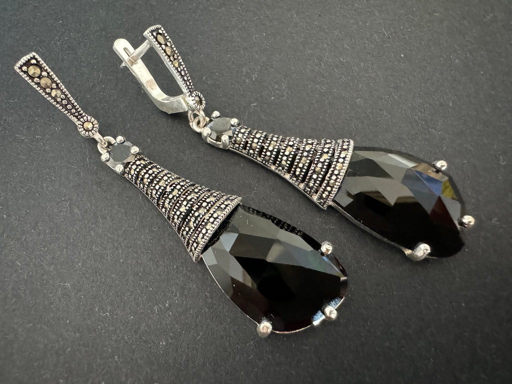 We make the jewelry of Sterling silver 925, which has very high quality. But please, note that silver always changes the color and becomes darker, because of several reasons: air humidity, using soap, skin contact and others. You can easily clean it with usual wet baking soda and wash with cold water. The jewelry will shine again!