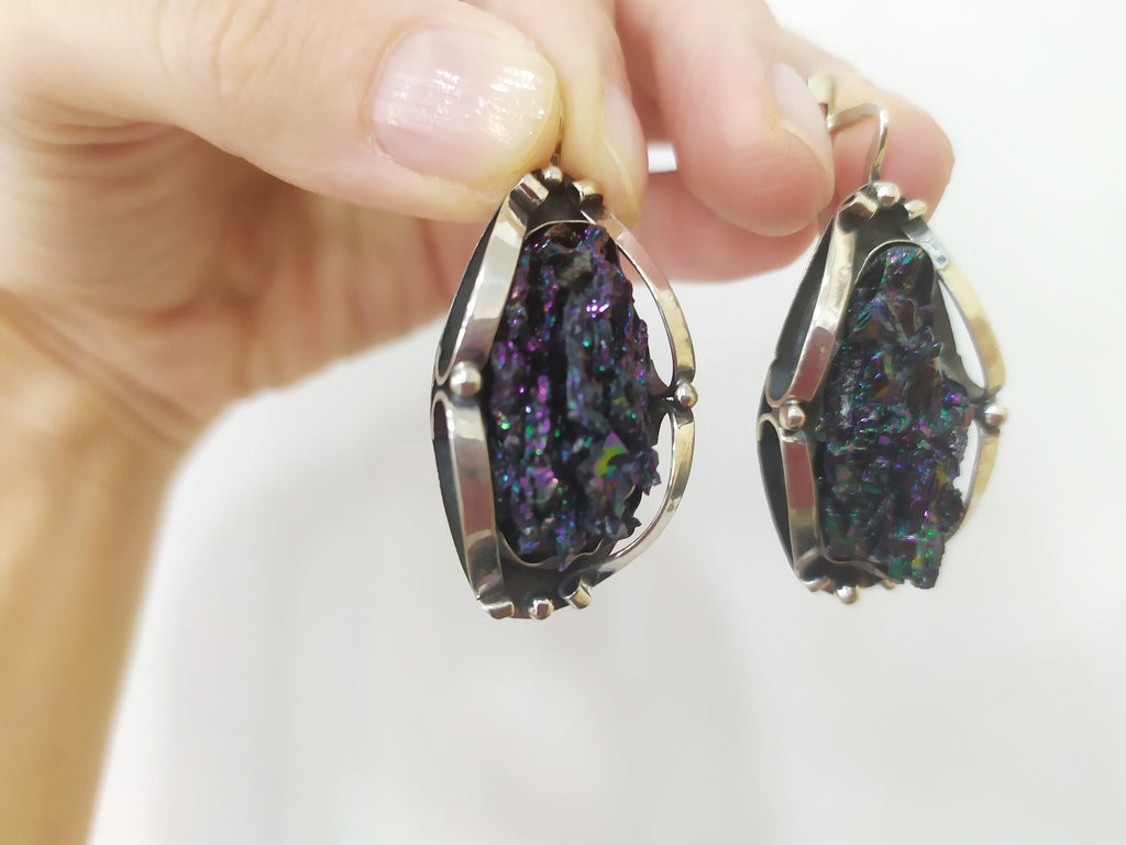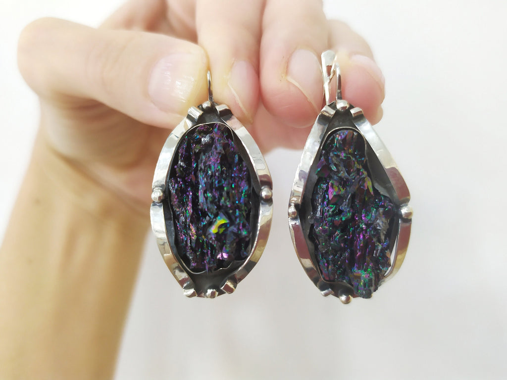 Elevate your style with our exquisite silver jewelry also on ebay. Each pair of earrings is crafted with 925 silver and adorned with a natural carbide stone in black or navy blue. Channel vintage vibes with these dangle one of a kind artisan designed earrings that add a touch of sophistication to any outfit.
