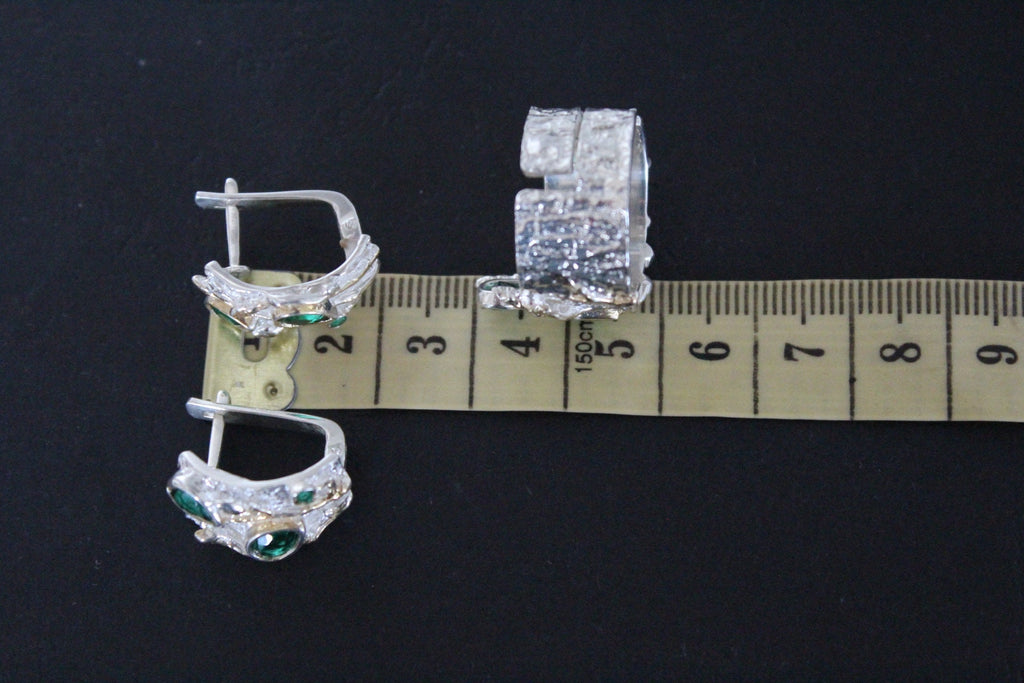 This modern style set is made of gilded 925 sterling silver emerald green zircon stones. This stone has a beautiful bright green color. The set includes small earrings and a adjustable ring. Unleash your inner fashionista with the best silver jewelry on Armenian Spirit. Shop from a top-rated store and discover modern designs that will elevate your style. Quality and style come together for the perfect accessory.
