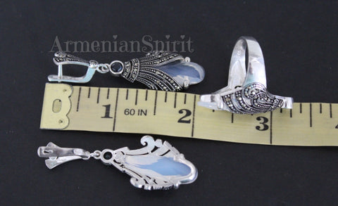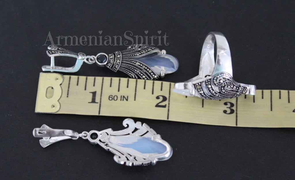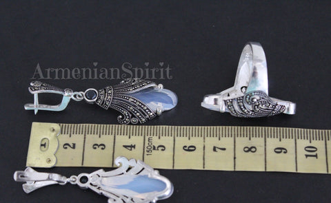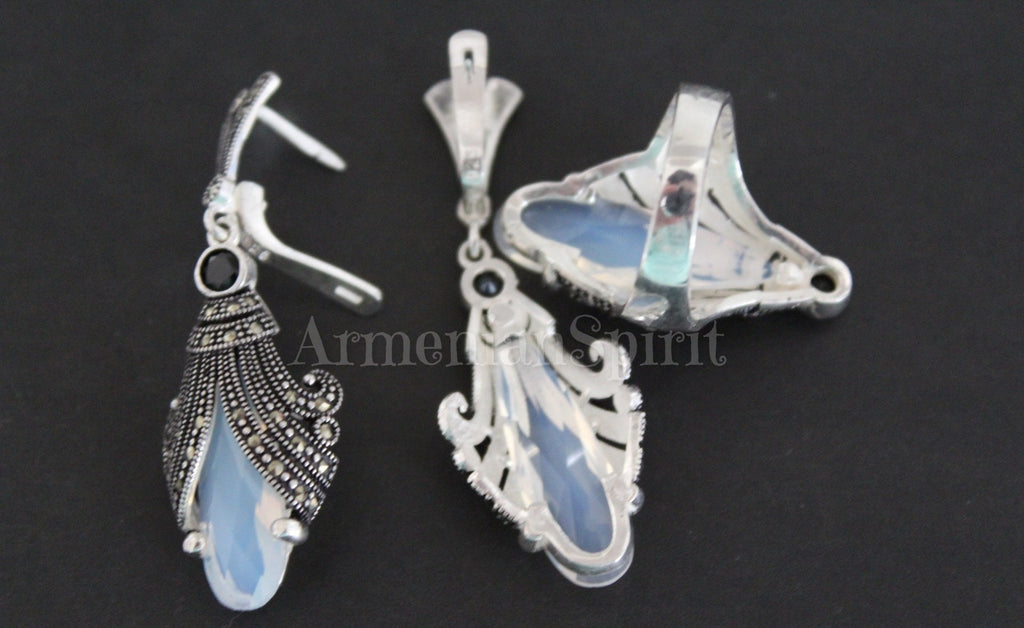 Materials: Sterling silver 925, black natural onyx and white artificial stone (with blue tint)