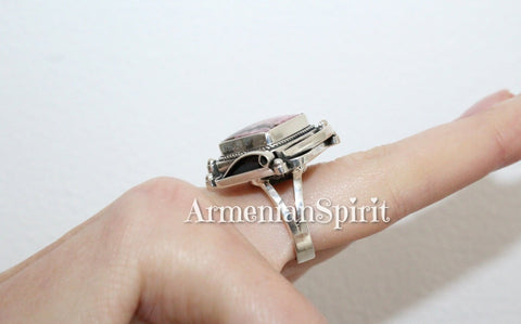 Sterling silver 925, real rhodonite