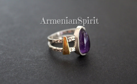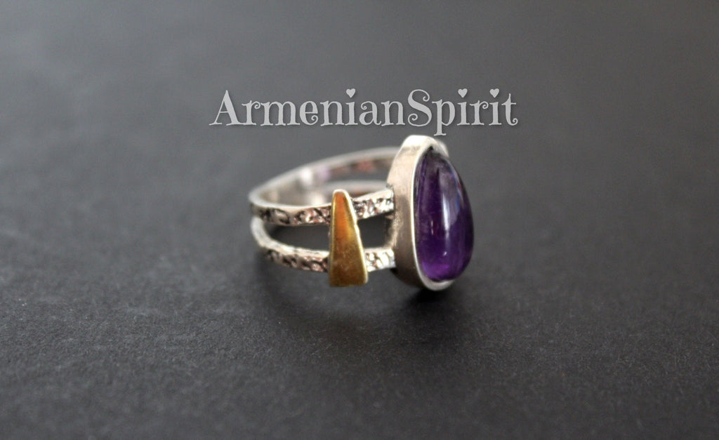 These sterling silver earrings with gold plated details and natural amethyst gemstone add a touch of elegance and radiance to any outfit. Handcrafted by skilled artisans, they are a modern, fashionable, and trendy addition to your jewelry collection. Shop with confidence from our Armenian Spirit store, where you'll find the best and most unique pieces.