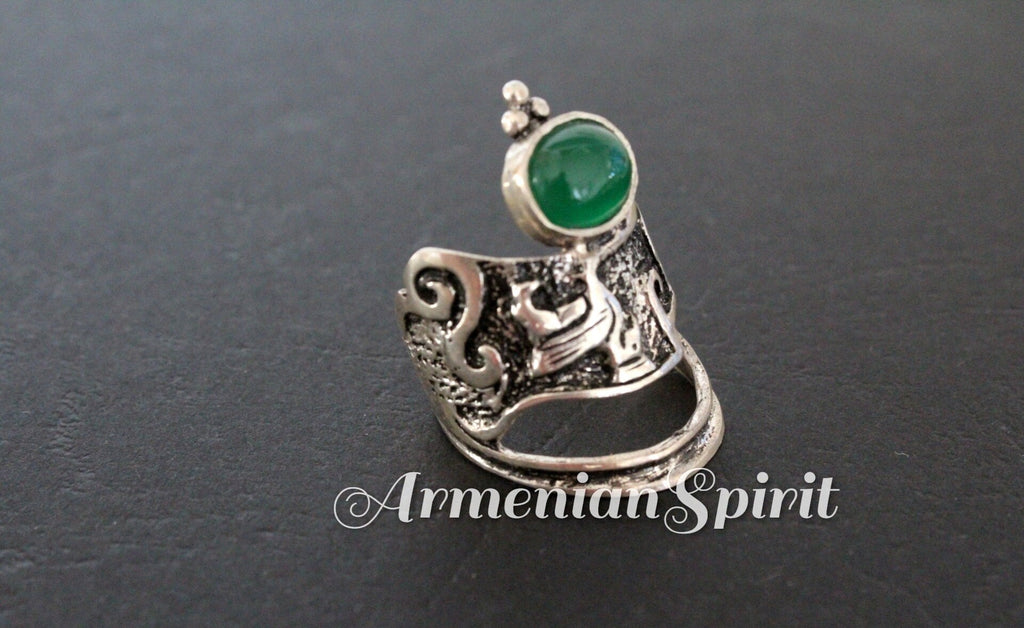 Materials: Sterling silver 925, lab red garnet or natural green jade.