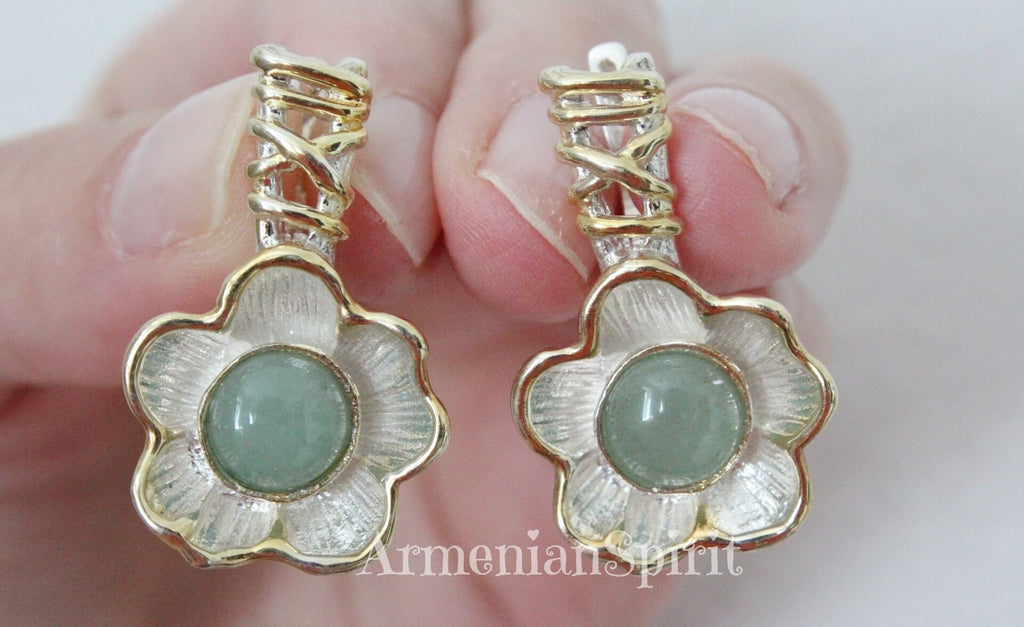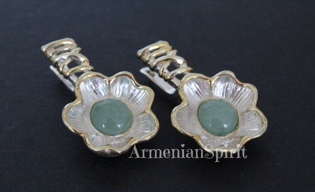 Crafted by skilled artisans, our green jade ring features a delicate flower shape and is made with high quality gold plated silver. Perfect for any occasion, this best-seller will elevate any jewelry collection. Experience luxury and elegance with every wear. Shop with confidence at our top-rated Armenian Spirit store. Enjoy free shipping and discounts on a variety of handcrafted items. Our customer care team is available to assist you with any questions or concerns. Trust in the best, and buy on Armenian Spirit today.
