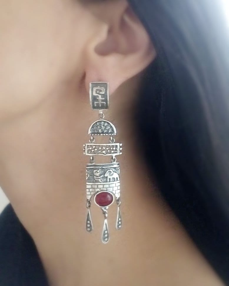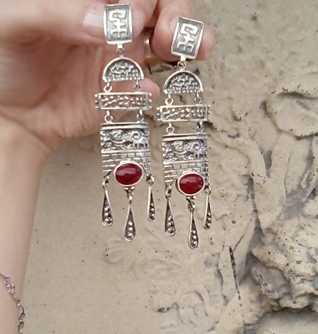 Materials: Sterling silver 925, lab red garnet or natural green jade.