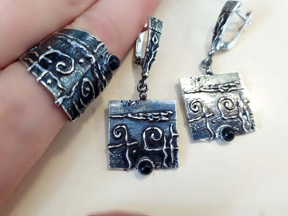 Elevate your style with our best silver jewelry on ebay. These goth black earrings for women are crafted from luxurious sterling silver 925, perfect for the fashion-forward and occult-loving woman. Make a statement and stand out from the crowd with these unique and intricate Taraz Armenian earrings. A perfect gift for any gothic woman.