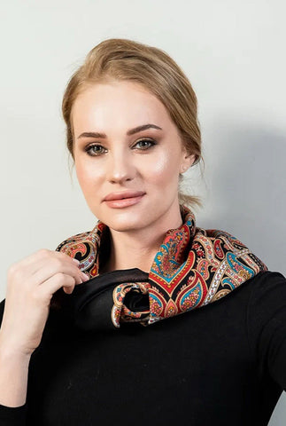 35-inch square head scarf embodies authentic Slavic textile traditions. The rich red and black colorway reflects time-honored design principles passed down through generations of artisans. Handmade construction ensures exceptional quality and durability, while the natural fiber provides warmth and breathability. Perfect for those who appreciate heritage craftsmanship and cultural authenticity in their accessories.