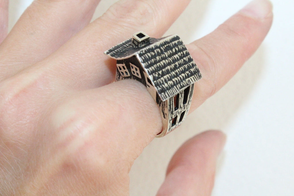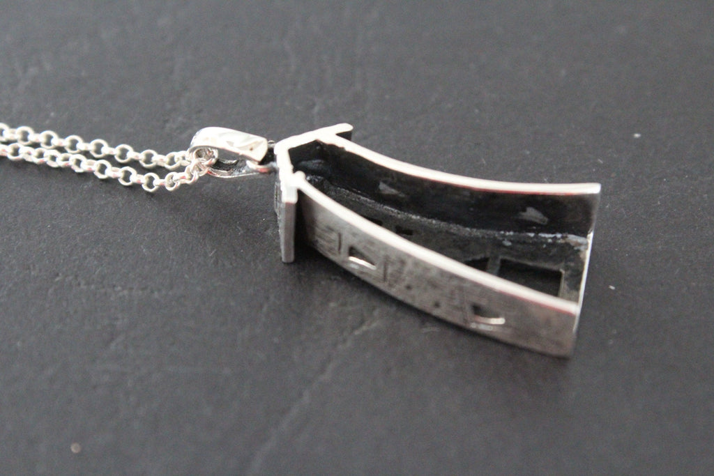 Introducing our unique House Jewelry Pendant. Made from blackened 925 sterling silver in an art style, this pendant is a rare and beautiful piece. This house jewelry pendant features a fairy tale design with intricate windows, adding a touch of whimsy to any outfit. Made with high-quality materials, it is a charming addition to any jewelry collection. Bring a bit of magic into your style with this unique pendant. Add an unusual touch to your jewelry collection.