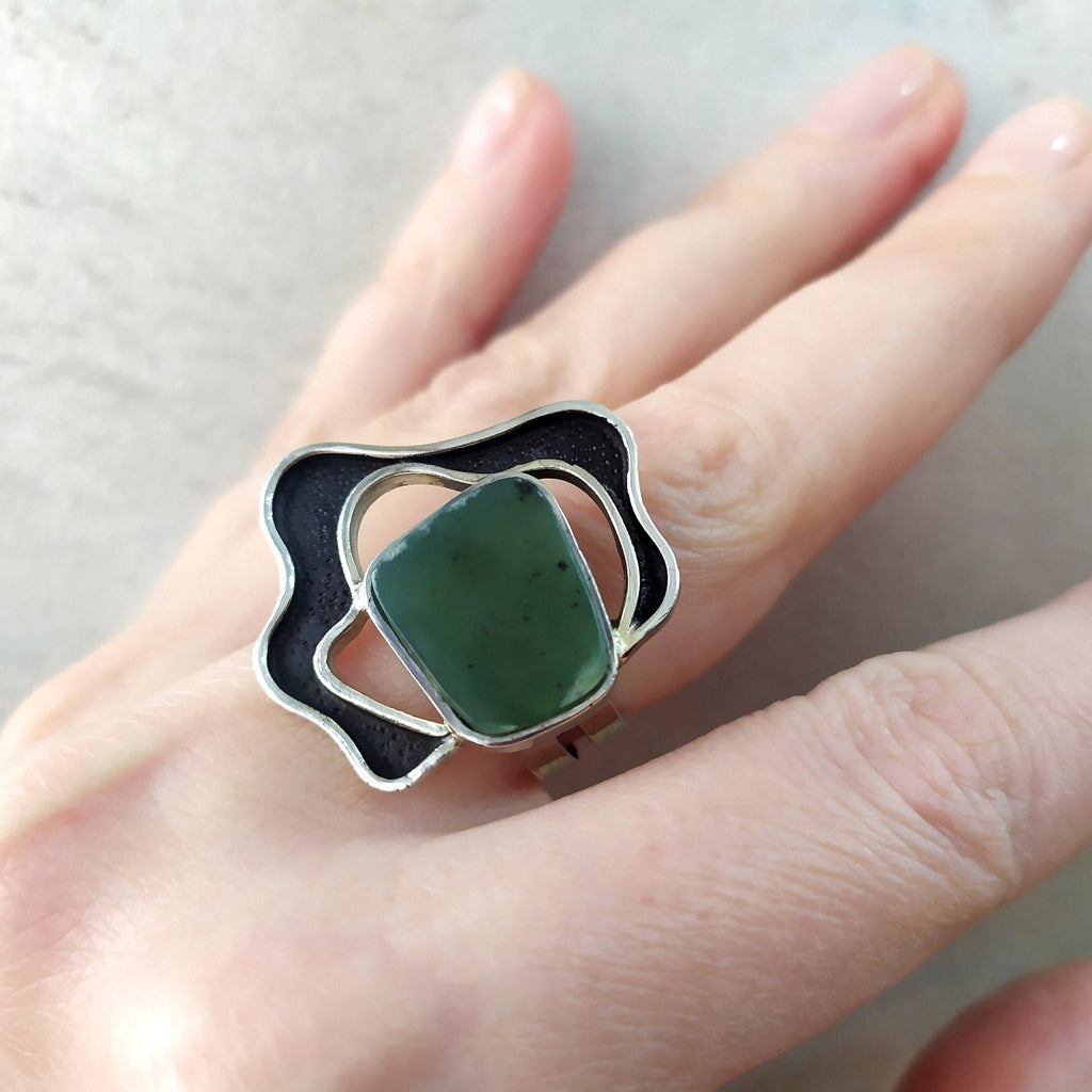 Sterling silver 925, natural jade (nephrite)