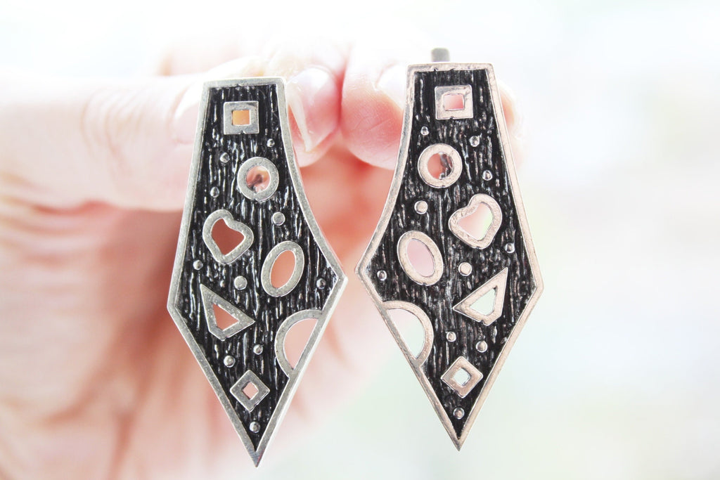 Introducing our best silver jewelry collection, exclusively available on ebay. These gothic-inspired goth style earrings are crafted from high-quality 925 silver, featuring a unique rough and large design that elevates your look. Add a touch of Armenian flair to your wardrobe with these extraordinary earrings, perfect for the fashion-forward woman.