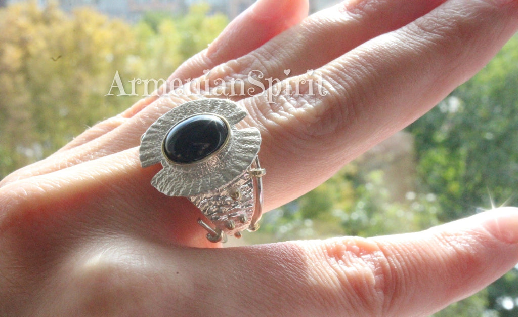 Discover the perfect gift at Armenian Spirit - a jewelry set featuring gilded sterling silver 925 and natural onyx. This high-quality set includes earrings and a ring, making it the best store for all your gift-giving needs. Elevate any outfit with this stunning Armenian jewelry. Shop beautifully crafted jewelry from Armenian Spirit on Etsy! Our pieces are perfect for sensitive skin, with no irritation. Enjoy free shipping worldwide and discounts on all orders, with tracking numbers for your convenience. Enhance your look with our high-quality pieces today. We make this set with blue chrysocolla, black onyx and red coral.