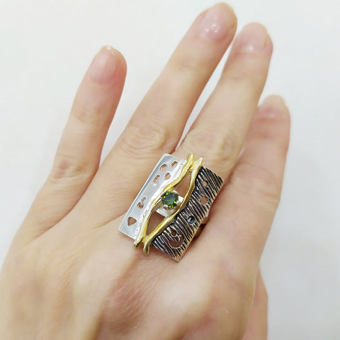 Introducing our jewelry set - a perfect pairing of green zircon stones and sterling silver 925 with gold plated accents. Elevate your style with this luxurious set that will make you feel like a true fashionista. Don't miss out on this must-have set from our exclusive Armenian Spirit collection.