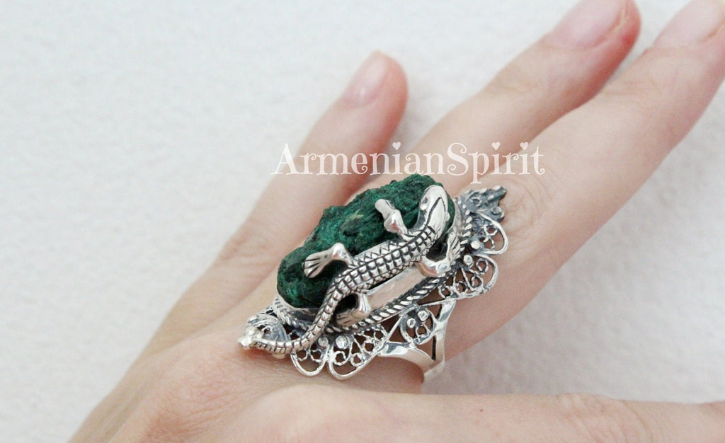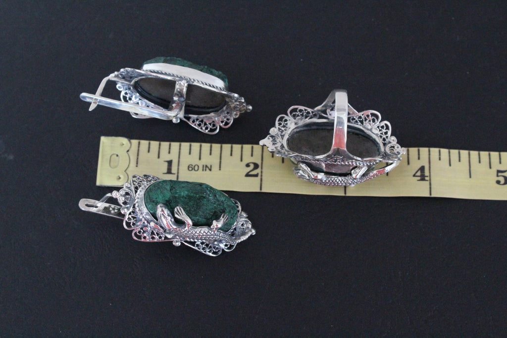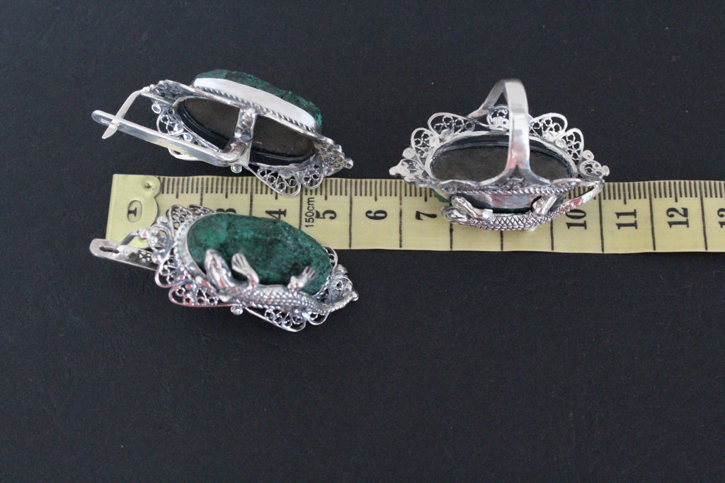 Add a touch of elegance with these sterling silver Malachite drusy green earrings and ring set. The unique lizard and reptile design is sure to win her heart, making it the perfect gift for any occasion. Impress and ensure the answer you're seeking with this stunning set. Handcrafted with beauty and made from high quality 925 sterling silver, each piece is one-of-a-kind and unique, making them truly special. Elevate your style with these stunning pieces from Etsy. Each purchase supports the best jewelry store on Etsy.