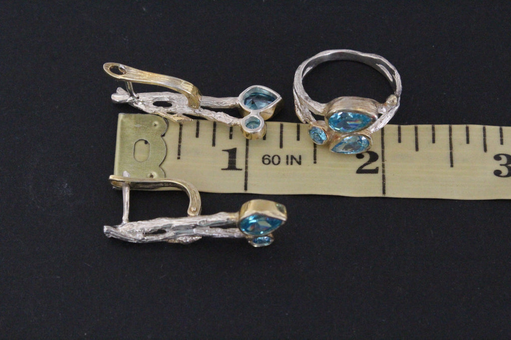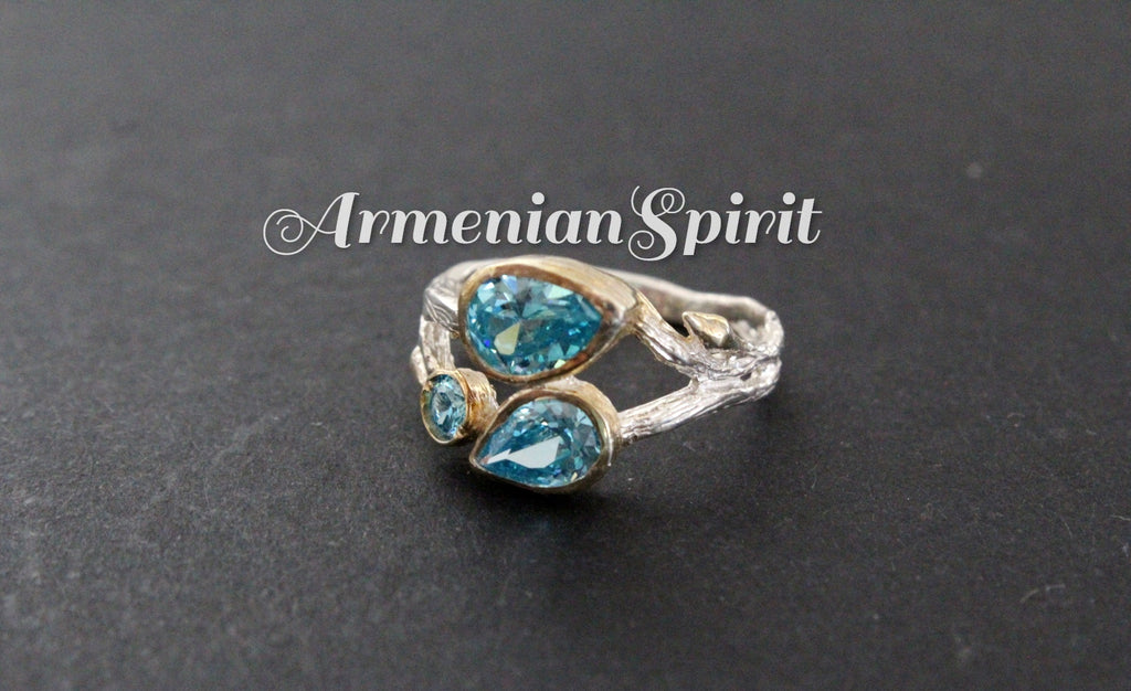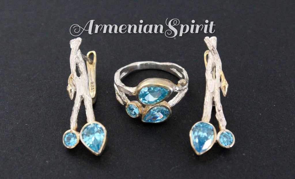 This elegant jewelry set features a delicate and dainty design, incorporating blue zircons and traditional Armenian craftsmanship. Made from 925 silver and accented with gold, this set offers a touch of sophistication and cultural heritage to any outfit. Perfect for those who appreciate unique and timeless pieces. Elevate your style with this unique and elegant set, also available exclusively on ebay. Purchase now for the best handmade jewelry experience.