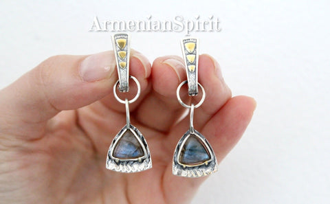 Elevate your style with our handcrafted Armenian Spirit Labradorite earrings. Made with high-quality silver 925 and gold plating, the blue gemstone adds a touch of elegance to any outfit. Perfect for gifts, shop with confidence from the best Etsy store for jewelry. Introducing Armenian Spirit jewelry, perfect for sensitive skin without any irritations. With free worldwide shipping and tracking number, you can enjoy beautiful pieces with ease. Plus, take advantage of our discounts for a truly affordable shopping experience. Shop now on our Etsy store.