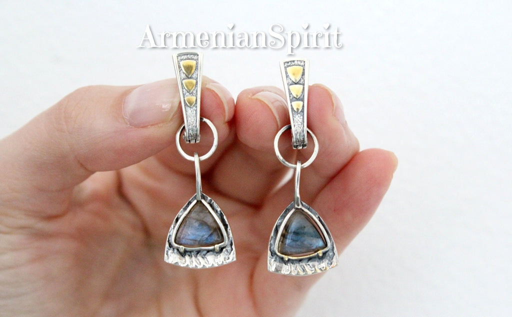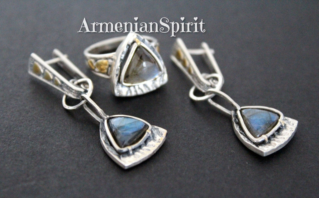 Upgrade your accessories with our Armenian Spirit Labradorite triangle ring! High quality and beautifully crafted with Silver 925 and gold plating, this stunning blue gem will add a touch of elegance to any outfit. Perfect for gifting, visit our Etsy store for the best selection of jewelry. Find the perfect piece of jewelry for your sensitive skin at Armenian Spirit etsy store. Our collection is designed to avoid irritations, and we offer free shipping worldwide with tracking number. Plus, enjoy exclusive discounts on all orders. Shop now and accessorize without worry.