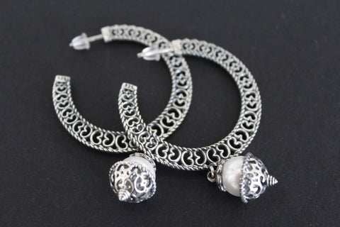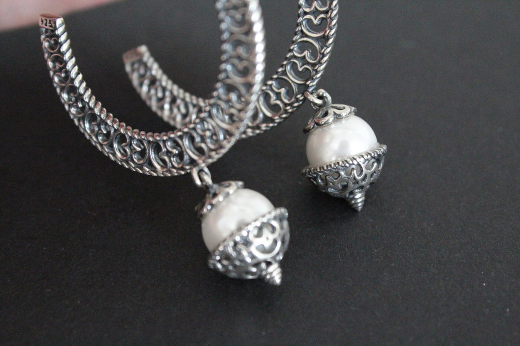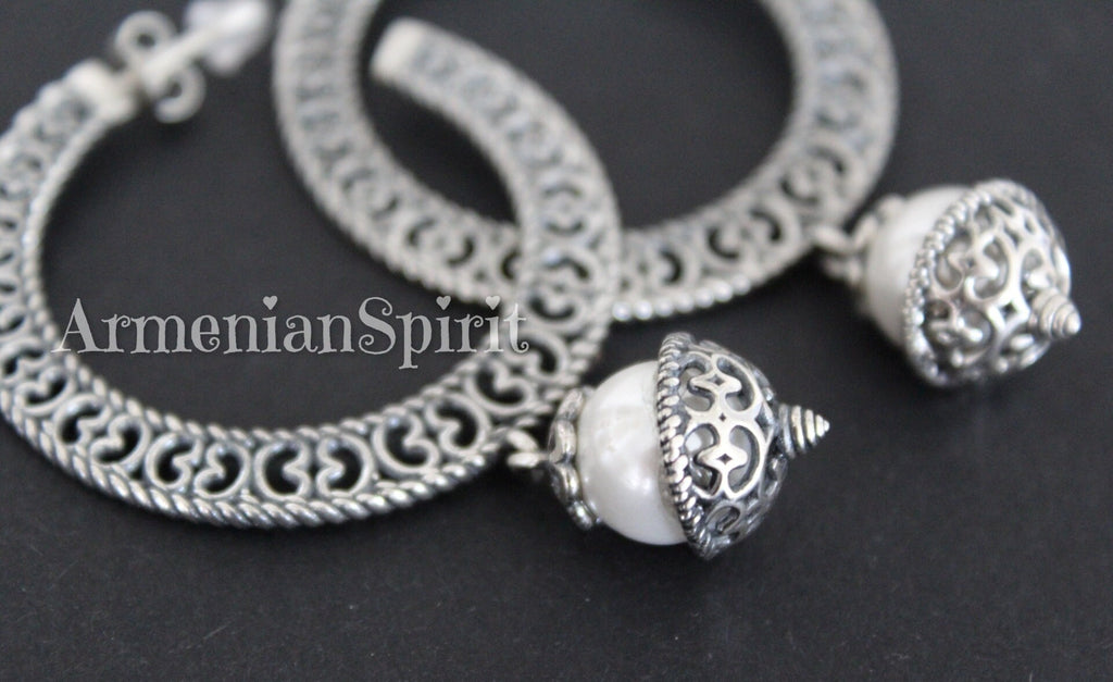 Elevate your style with our stunning Large Round hoop Earrings. Crafted with high quality Silver 925, these earrings feature a beautiful pearl white center and intricate Armenian and Western Armenia inspired ethnic ornaments. Upgrade your jewelry collection or give the perfect gift with our modern and unique designs. Shop now at Armenian Spirit on Etsy - the best store for gifts.