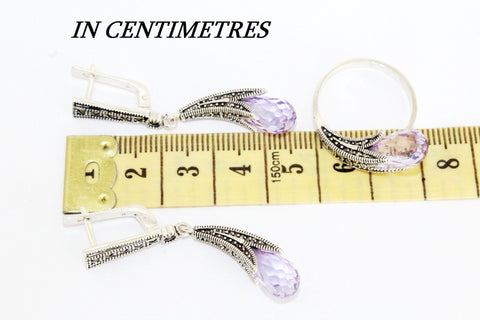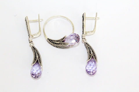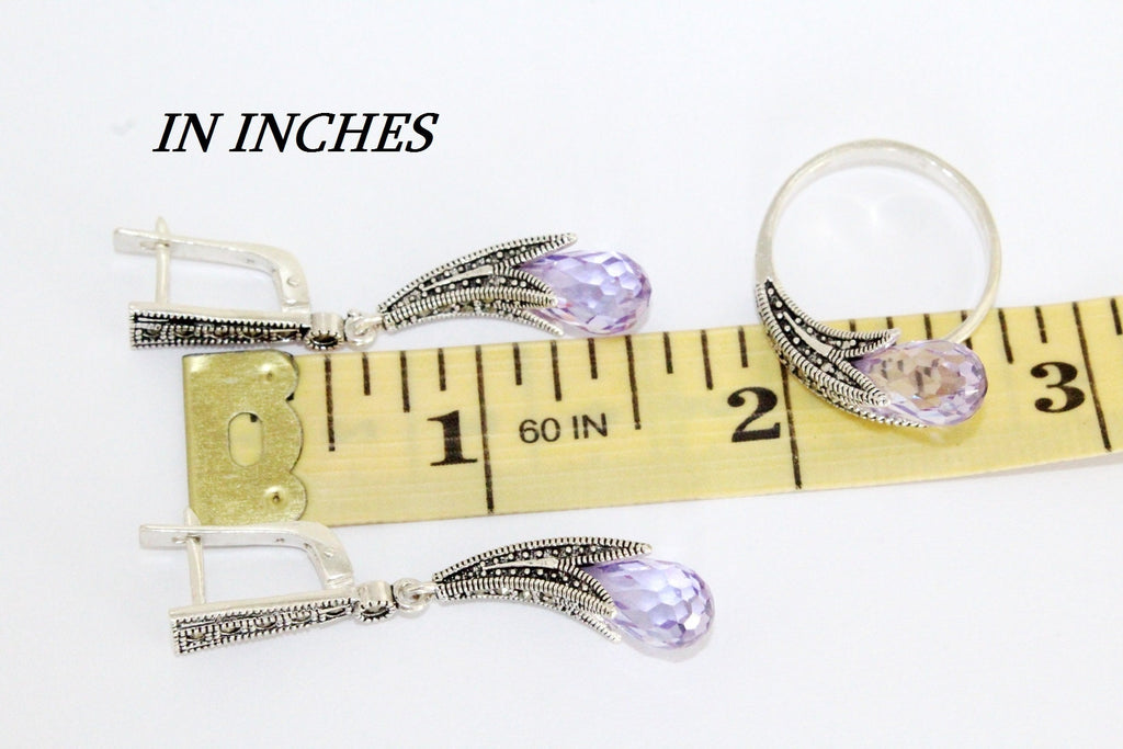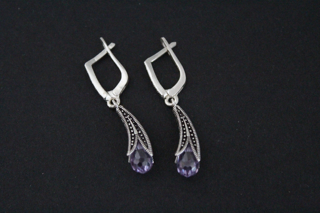 These handmade Lavender earrings from Armenian Spirit's Etsy store feature a simple yet elegant design, crafted with high quality sterling silver and accented with a beautiful purple zircon stone. The delicate curves and middle size make them perfect for weddings or everyday wear. Elevate your purple or violet outfit with these unique and timeless lavender earrings. Indulge yourself or your loved one with our stunning and affordable jewelry. Our collection is perfect for sensitive skin, hypoallergenic and ships worldwide for your convenience. With our top-rated Etsy store, you can trust us to deliver 5-star quality and the best gifts for your beloved woman. Shop now and experience the beauty and craftsmanship of our online jewelry store!