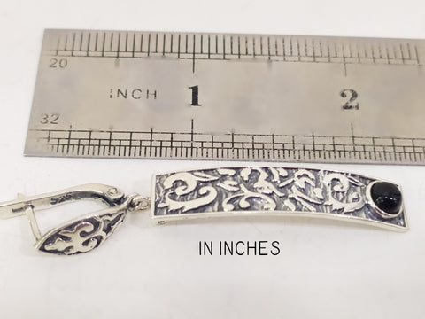 Elevate your style with our handcrafted, Armenian-inspired earrings. Made with exquisite black onyx and sterling silver, these long, elegant dangles feature a unique celtic pattern that exudes sophistication and luxury. Perfect for adding a touch of culture and beauty to any outfit.