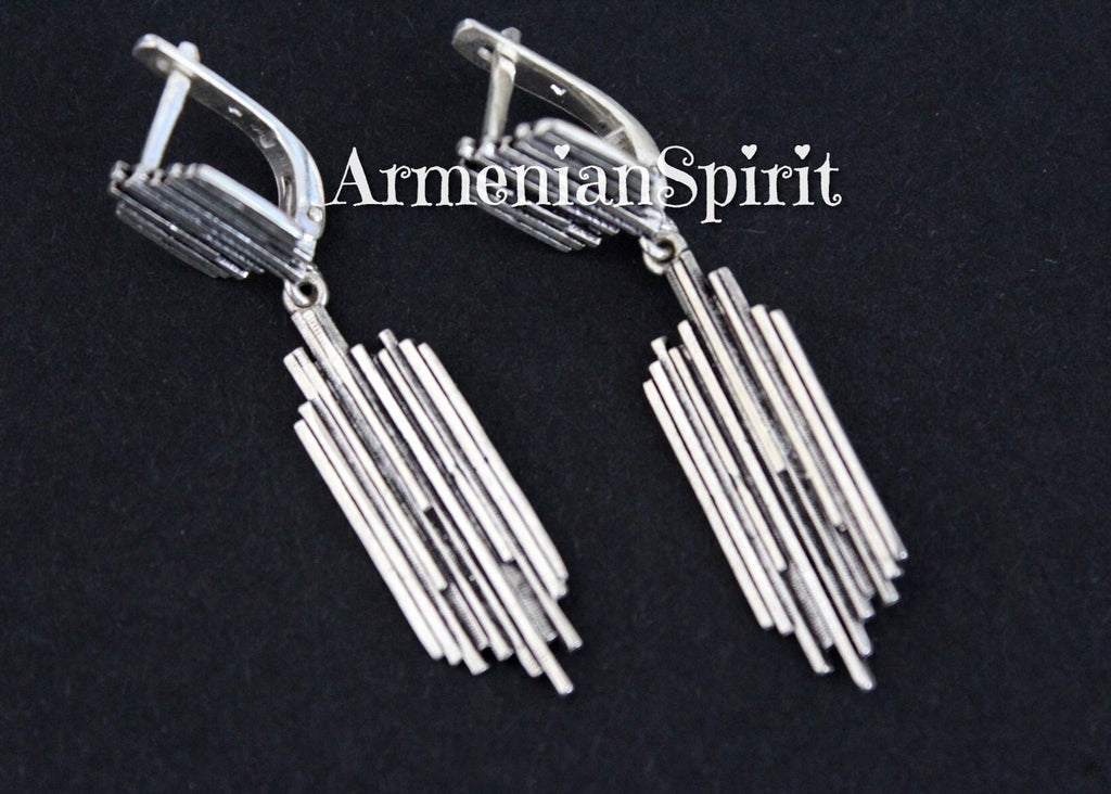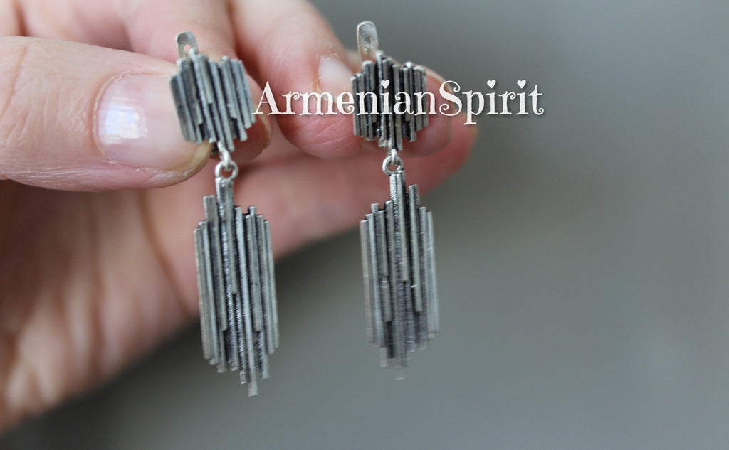 Elevate your style with these exquisite long earrings, handcrafted by skilled Armenian artisans using high-quality 925 silver. Inspired by the famous natural rock in Arenian called Symphony of Stones near Garni Temple, these earrings will add a touch of elegance to any outfit. These long earrings are a perfect blend of modern and traditional styles, handcrafted with care in Armenia using genuine 925 silver. Shop now at the best Armenian jewelry store and add a touch of sophistication to your wardrobe.