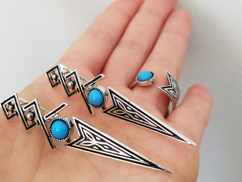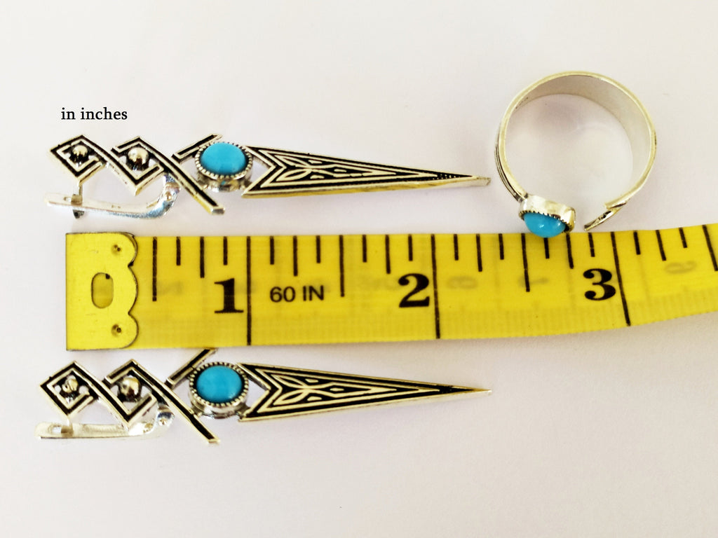 Long earrings with ethnic pattern Silver 925 with natural light blue turquoise stone Bohemian jewelry Armenian handmade