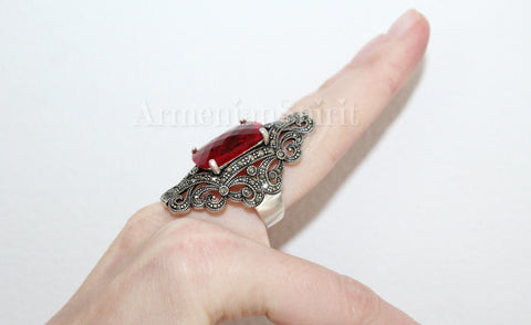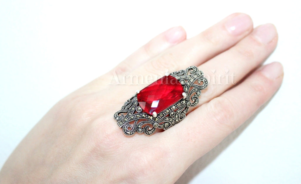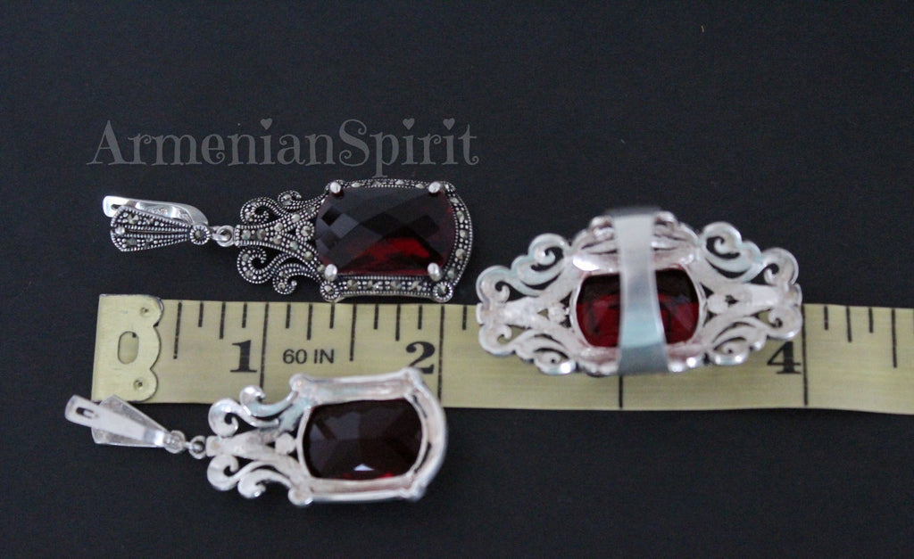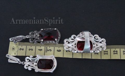 Indulge in opulent elegance with our luxurious Silver 925 green topaz Victorian Earrings and Ring set. Adorned with sparkling Marcasite, these very large pieces are perfect for the stage or cosplay, making you shine like an actress. Feel confident in our unique and extravagant jewelry collection only available in our exclusive store.