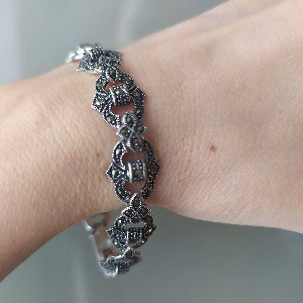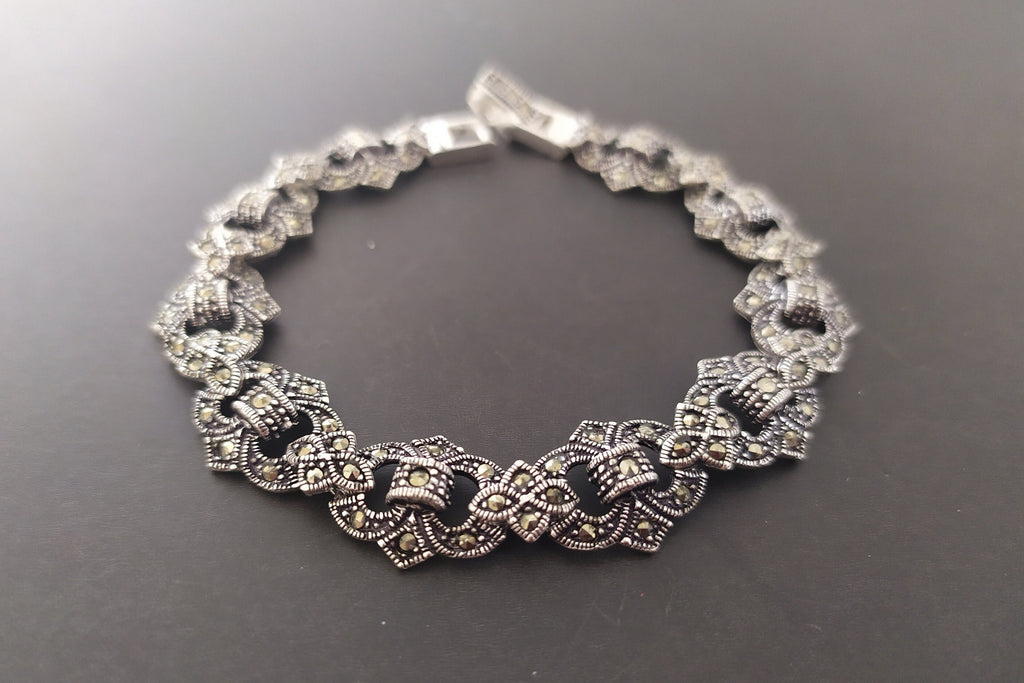 This delicate bracelet is designed for the woman who loves silver jewelry. The bracelet is made of sterling silver - 925. It is all strewn with marcasites. You can choose the length of the bracelet from the options. If you have other length preferences, please contact me.