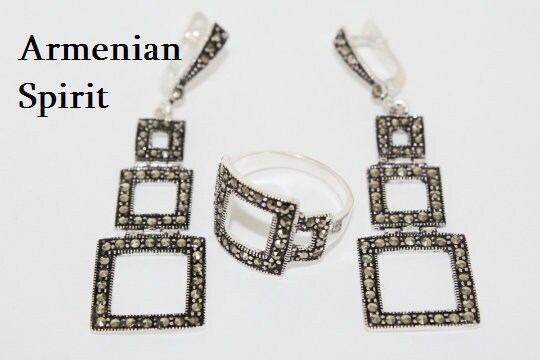 Find the perfect gift at Etsy's Armenian Spirit store! Lightweight and handmade, our Marcasite earrings and ring are crafted with high-quality SILVER 925 for everyday wear. Sparkle with simplicity and style in these square jewelry pieces. Discover the perfect gift for sensitive skin - our hypoallergenic jewelry! With free worldwide shipping, you can give the gift of style and comfort to your loved ones. Shop now at the top store for gifts and make their wishes come true with the best jewelry!