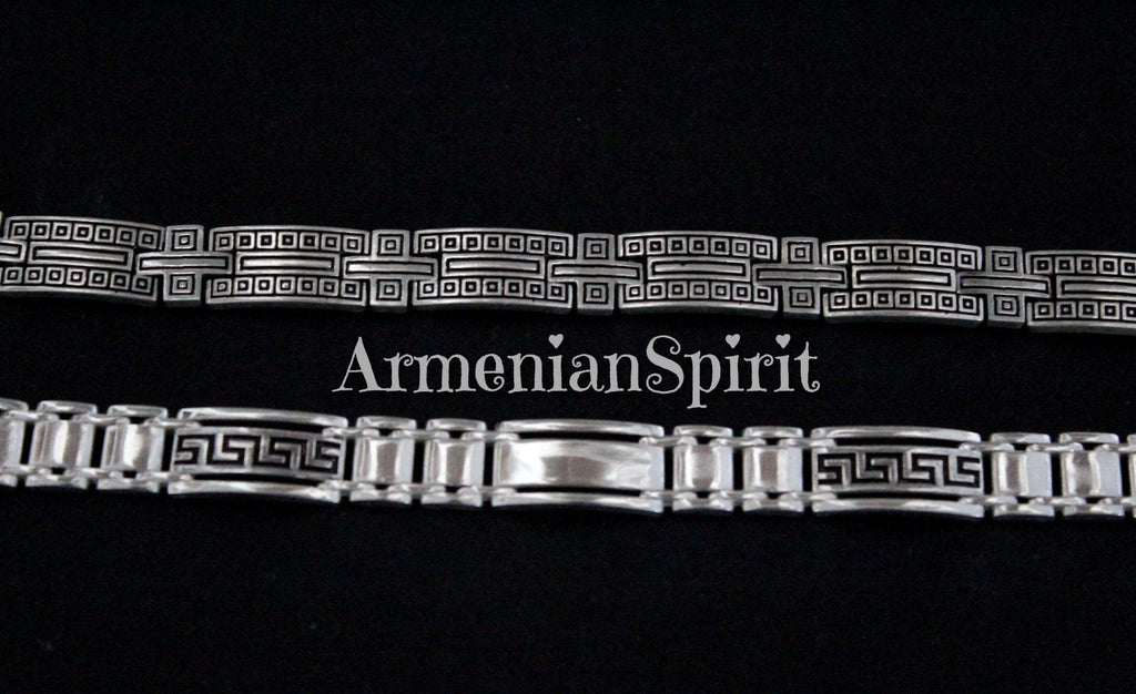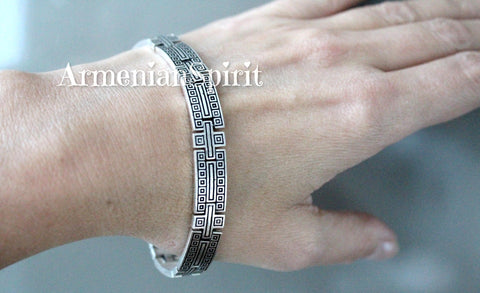 This handmade sterling silver bracelet features a unique ethnic ornaments. With two patterns to choose from, it adds a touch of individuality and style to men outfit. Made with 925 sterling silver, it's a high-quality piece that's both fashionable and meaningful. Find unique and stylish jewelry for men on Armenian Spirit. Our pieces are all stamped with 925, ensuring high quality and durability. Elevate your style with our handcrafted designs.