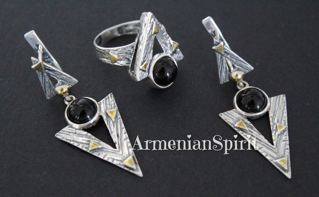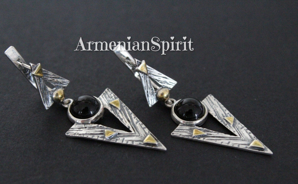 Elevate your style with our Modern earrings from Armenian Spirit etsy store. Crafted with high quality Sterling silver 925 and gold plated parts, these earrings are the perfect addition to any outfit. The natural black onyx adds a touch of sophistication. Ideal for mothers and available to buy online. Get ready to dazzle with our hypoallergenic, sensitive skin-friendly jewelry! Enjoy free worldwide shipping from one of Etsy's top-rated 5 star jewelry stores. Show your beloved woman some love with the perfect gift, all at affordable prices. Shop now!