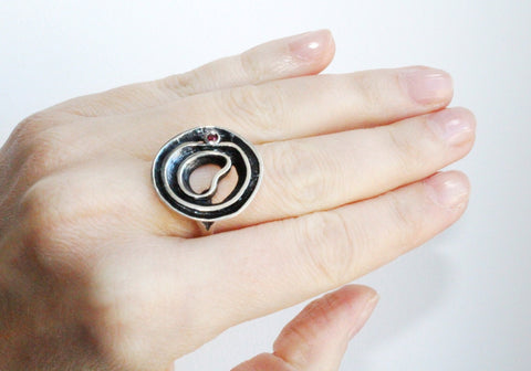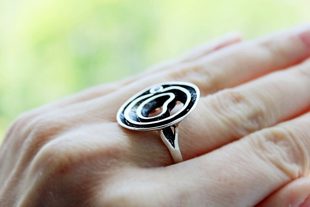 Upgrade your jewelry collection with this modern 925 sterling silver ring. The oxidized finish and pink zirconia stone add a unique touch to the snail-shaped design. It's the perfect gift for your girlfriend from this high-quality etsy shop.
