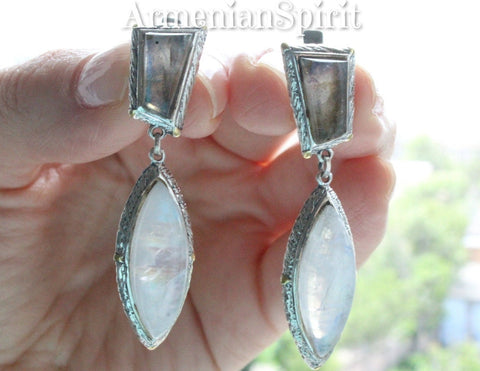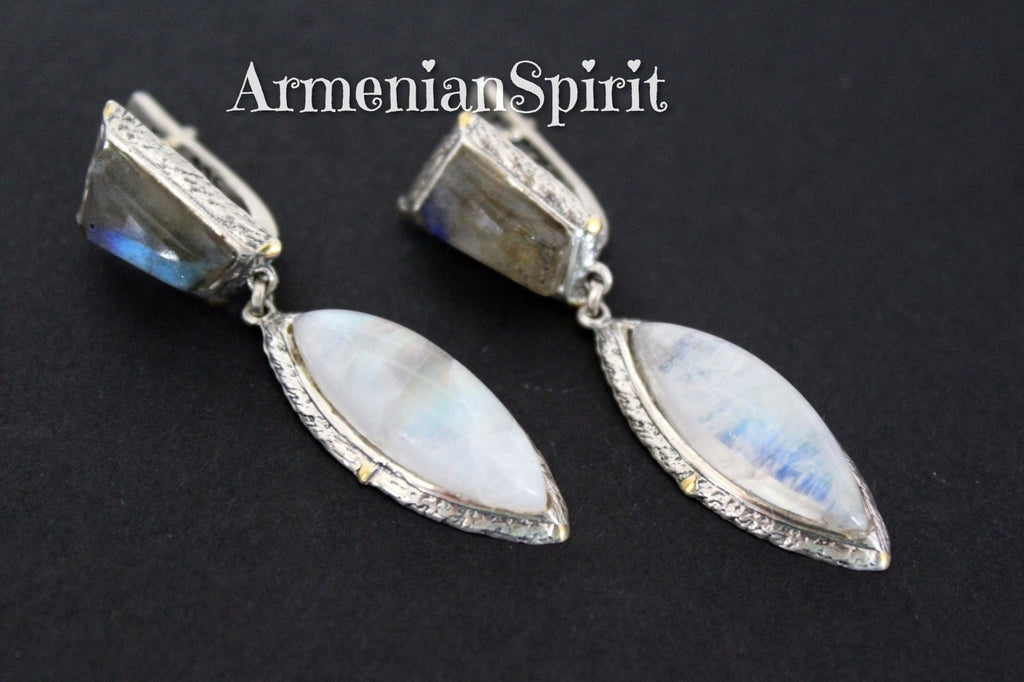 Sterling silver 925, natural lunar stone (moonstone) and labradorite