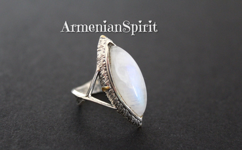 Indulge in the beauty of Moonstone and Labradorite with our sterling silver 925 ring. This everyday jewelry piece features gems that not only add an elegant touch but also hold mysterious meanings and can serve as a birthstone. Visit Armenian Spirit on Etsy for the best gift store experience.