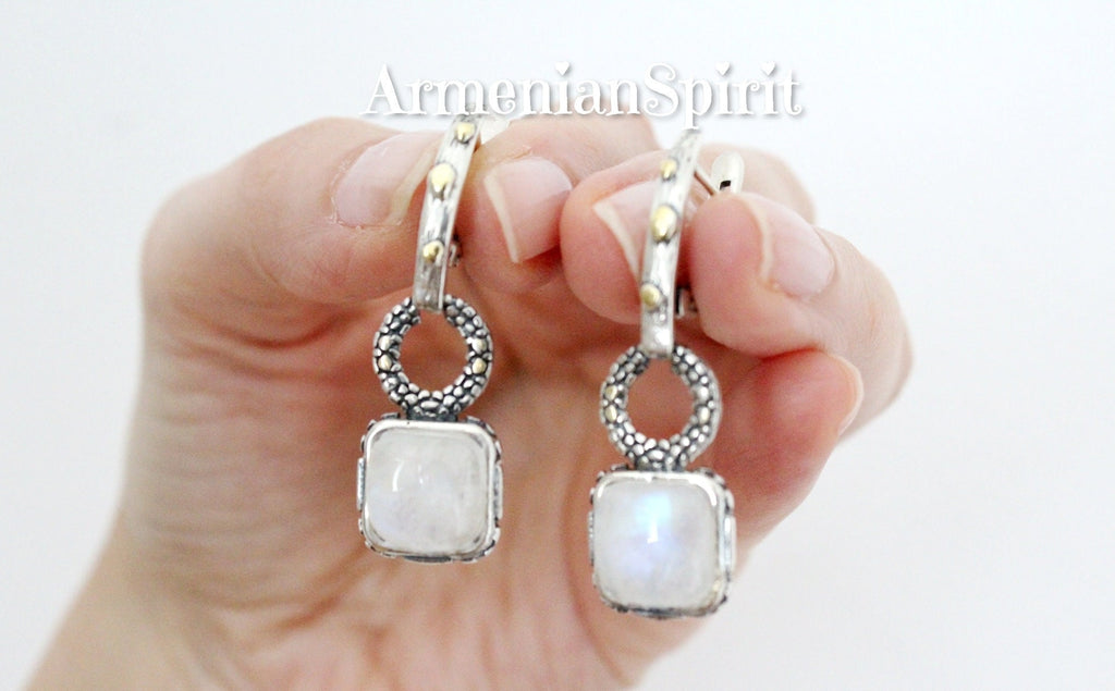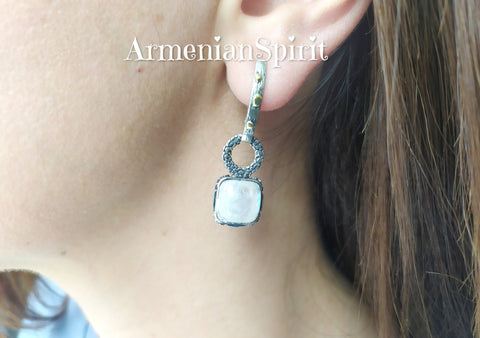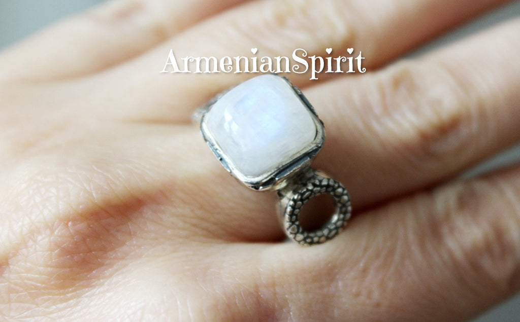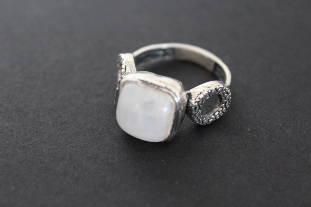 Enhance your jewelry collection with our Moonstone gemstone dangle square earrings and ring SET. Crafted from high-quality Silver 925, this set exudes elegance and sophistication. Experience the natural beauty and positive energy of lunar stone gemstones, making it a unique addition to any outfit.