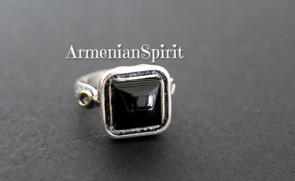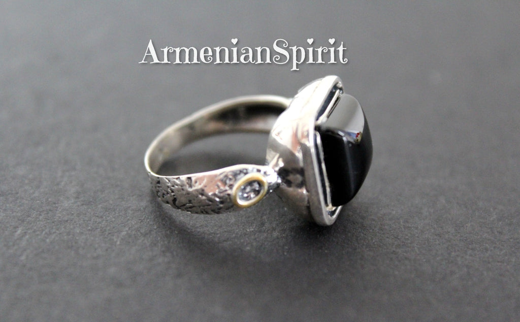 Sterling silver 925, natural lunar stone (moonstone), black onyx