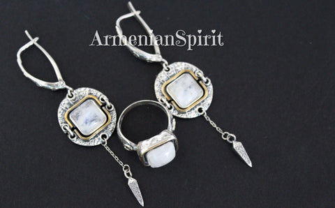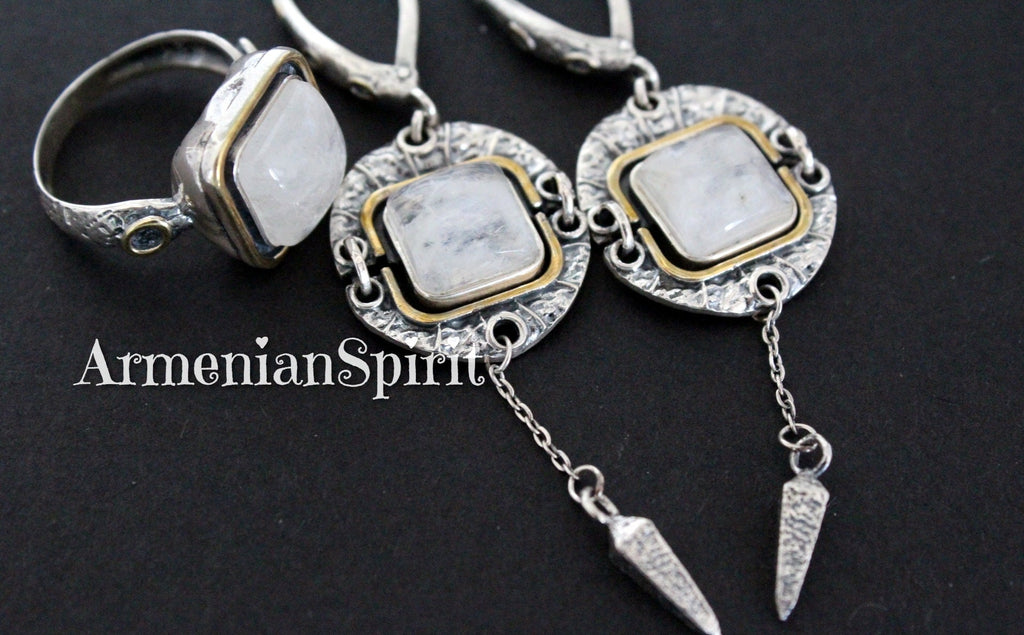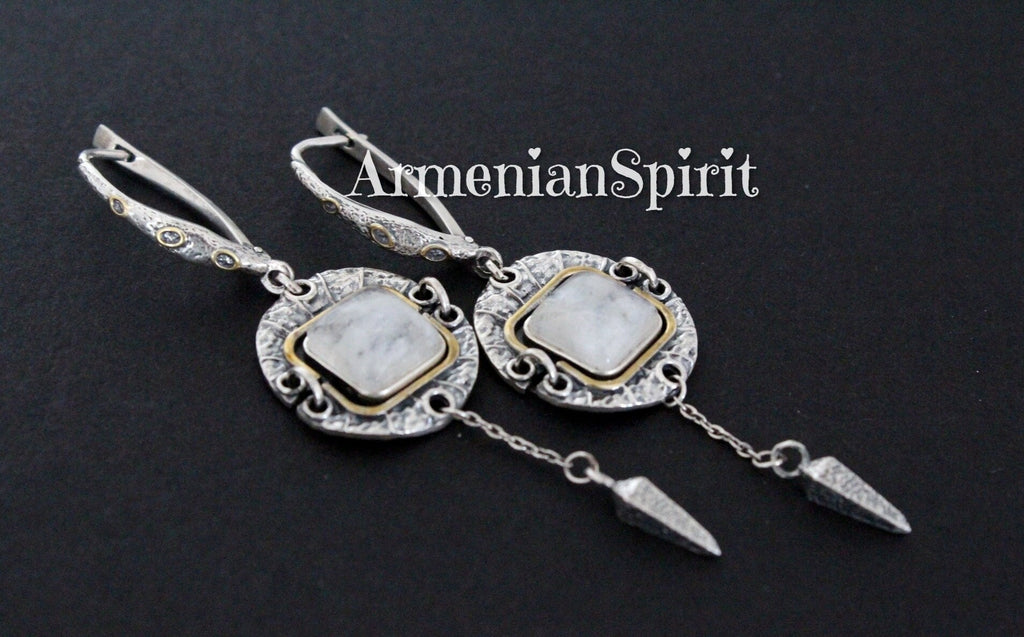 Elevate your style with Armenian Spirit's Moonstone Earrings. Handcrafted with high quality sterling silver, these long chain earrings feature elegant white moonstones that effortlessly complement any outfit. Shop now at our online store for a modern and versatile addition to your jewelry collection.
