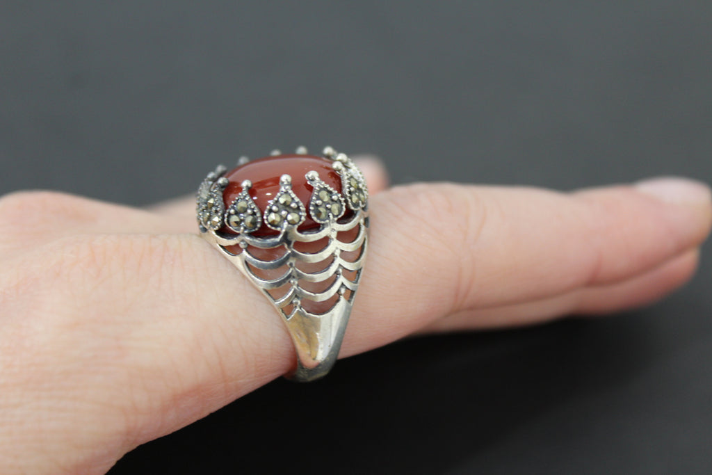 Sterling silver 925, real natural carnelian (burnt orange-brown)