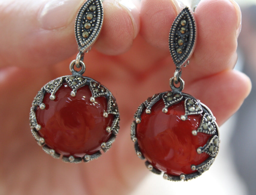 Experience the beauty and history of Armenia with our handmade Natural Carnelian Earrings. Made with high quality 925 Silver, these earrings feature real gemstones and a unique crown rim design. Perfect for gifts, these burnt orange earrings add a touch of elegance to any outfit. Discover the Armenian Spirit with our jewelry. Shop confidently at the Armenian Spirit Etsy store for high-quality jewelry that is perfect for sensitive skin. Our products are designed to prevent irritation and we offer free shipping worldwide with a tracking number. Plus, don't miss out on our amazing discounts!