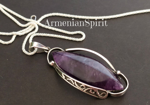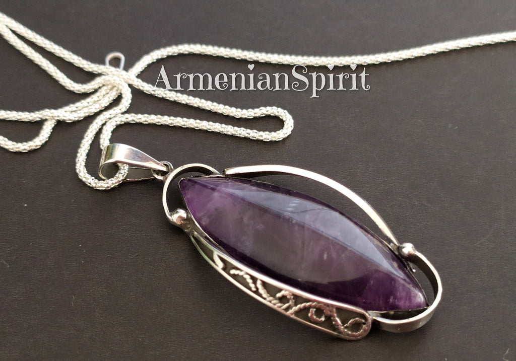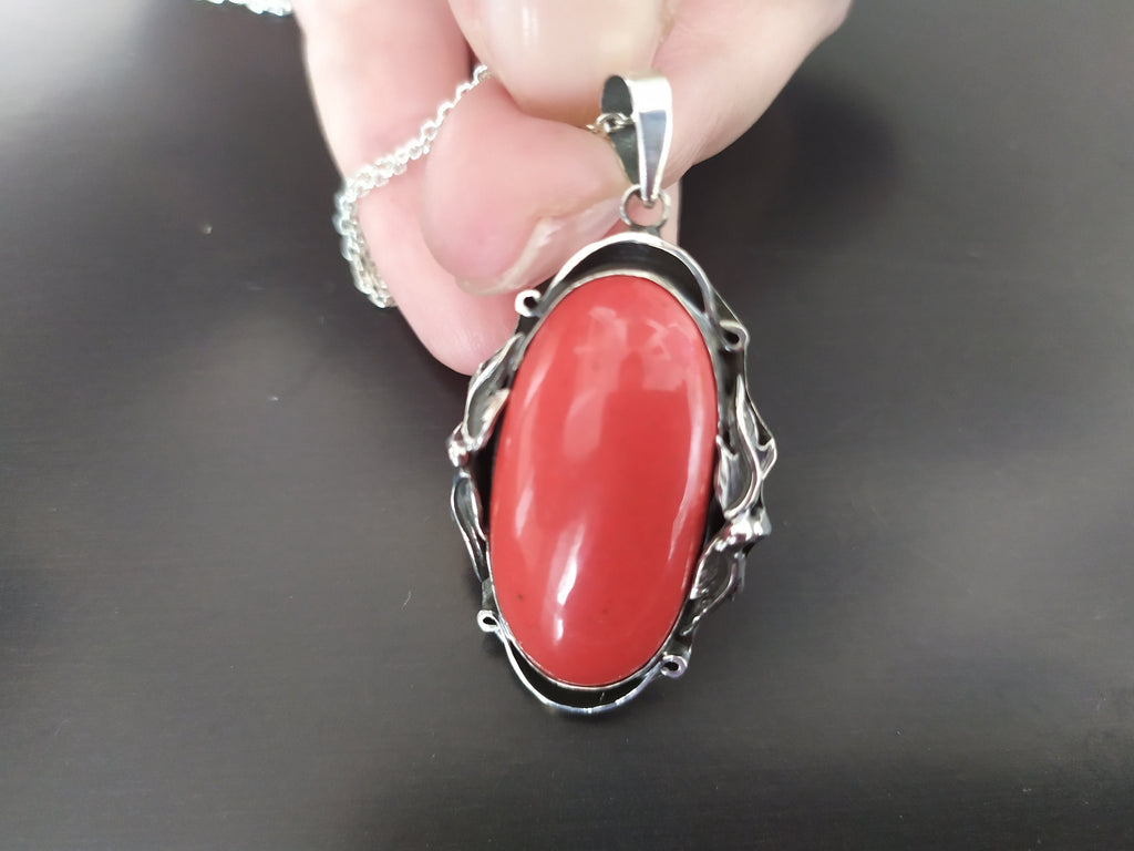 Beautiful handmade pendants with natural gemstones: red sponge coral, purple amethyst and green malachite. The pendants are made of 925 sterling silver in vintage style. This pendant is for women, which love large cabochon pendants. If you have other preferences and would like other gemstone, please message me.