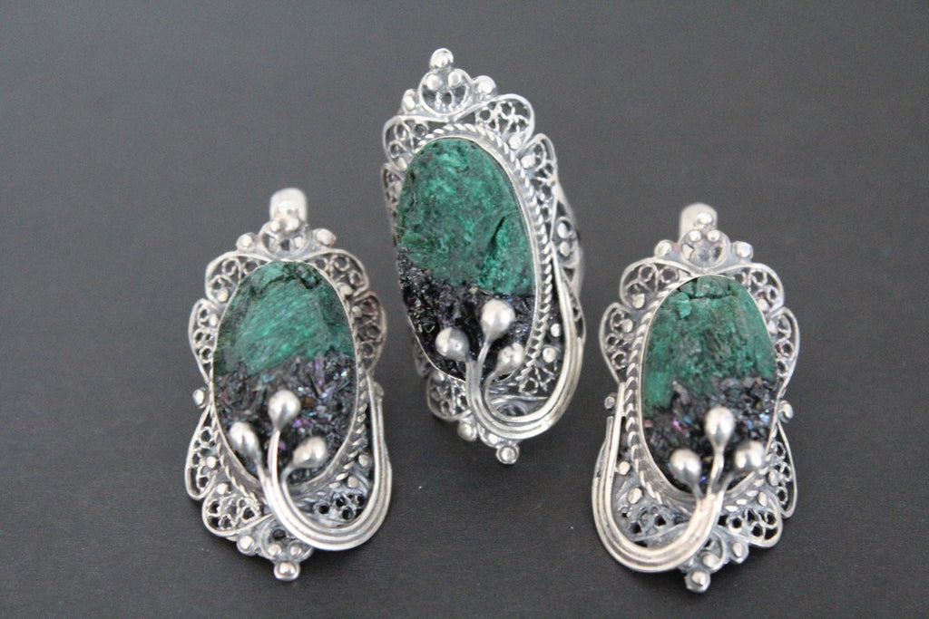 Expertly handcrafted in Armenia, this stunning Natural Malachite Ring showcases exquisite vintage style. Made with high-quality STERLING SILVER 925, this unique piece of jewelry is available in all sizes. Elevate your style and add a touch of elegance with this beautifully crafted, one-of-a-kind ring from our collection on Etsy.