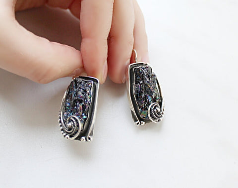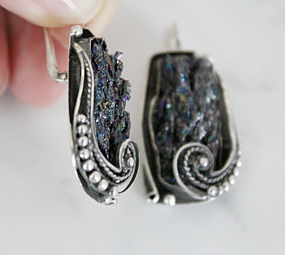 Discover the unique, high-quality jewelry of Armenian Spirit on Etsy. These vintage dangle earrings feature natural silicon stones for a touch of retro elegance. Made with real gemstones and sterling silver, they make the perfect gift for any occasion. Elevate your style with these stunning pieces.