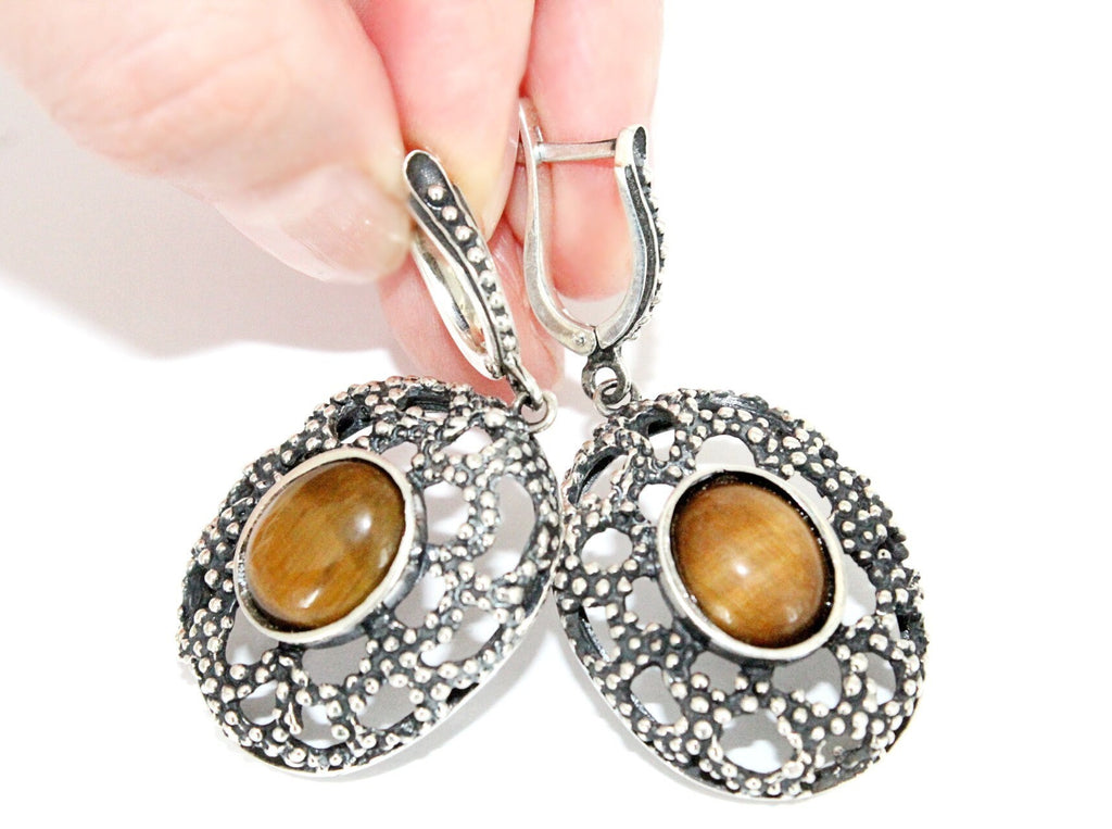 Elevate your style with this exquisite Natural Tiger Eye gemstone ring, crafted in sterling silver 925. The rich, golden-brown hues of the tiger eye stone offer a timeless elegance, while the high-quality silver setting ensures durability and a refined finish. Perfect for those who appreciate sophisticated accessories that blend natural beauty with classic craftsmanship.